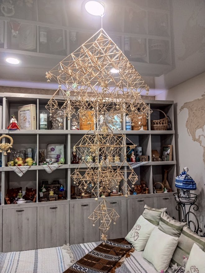 На фабрыцы вырабляюць саламяных павукоў – гэта традыцыйныя беларускія абярэгі, што падвешваюцца пад столь, і нават калі ты не плануеш набываць іх, зайдзі, паглядзі – гэта неверагодна прыгожа!