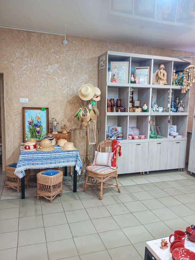 Традыцыйныя сувенірныя лялькі розных памераў, пано з ільну і саломкі, саламяныя бабры ў ільняных строях, посуд, карціны, кошыкі з лазы, драўляны скульптуркі, гліняныя вазы і посуд, пасцельная бялізна, ручнікі, абрусы, каваныя вырабы.